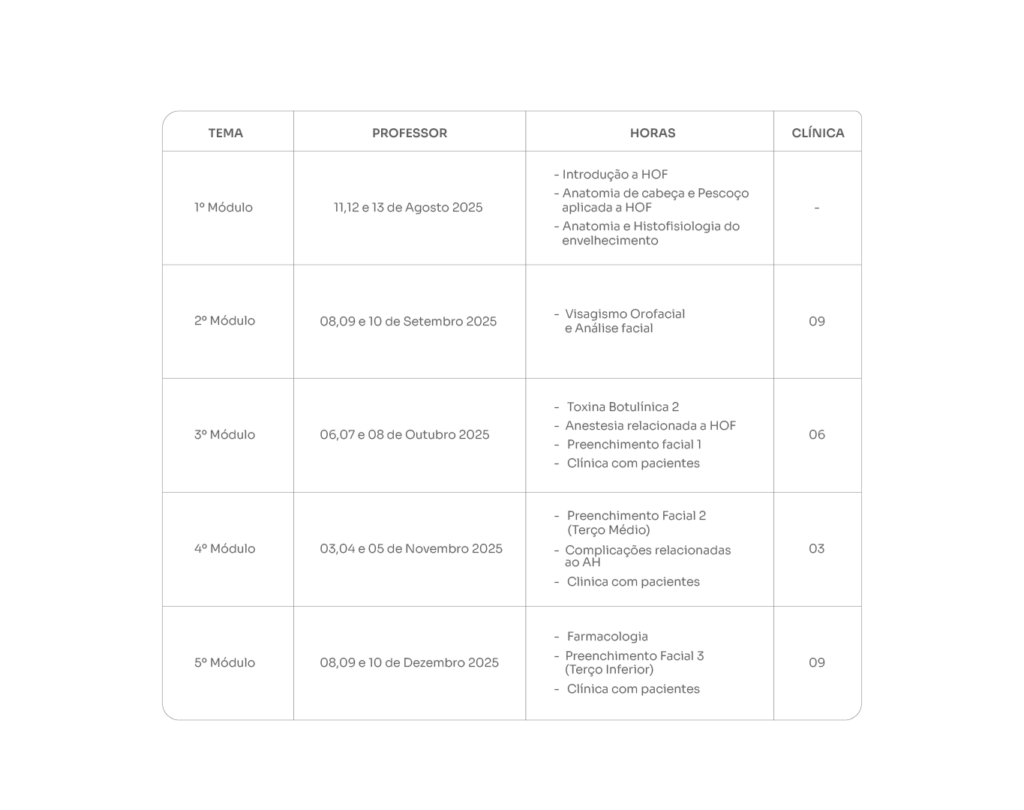 Essa é a oportunidade ideal para profissionais que buscam alcançar excelência em harmonização orofacial, aprendendo diretamente com um dos maiores pesquisadores e referências do Brasil.