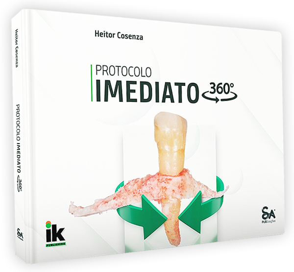 O livro Protocolo Imediato 360º tem como inspiração a imersão que leva o mesmo nome. Escrito durante a pandemia, o livro abrange as reabilitações totais implantossuportadas, que permitem a solução rápida, eficiente e muito previsível de casos de pacientes desdentados ou que tem seus dentes condenados. Assim como no curso, o livro trata sobre as técnicas e métodos que permitem evitar enxertos ósseos ao máximo e assim reabilitar pacientes atróficos com menor morbidade. Complemento um do outro, com a obra e imersão, você pode realizar com precisão e segurança as etapas do planejamento reverso, passando pelas técnicas cirúrgicas e finalizando com a entrega e o acompanhamento das próteses.